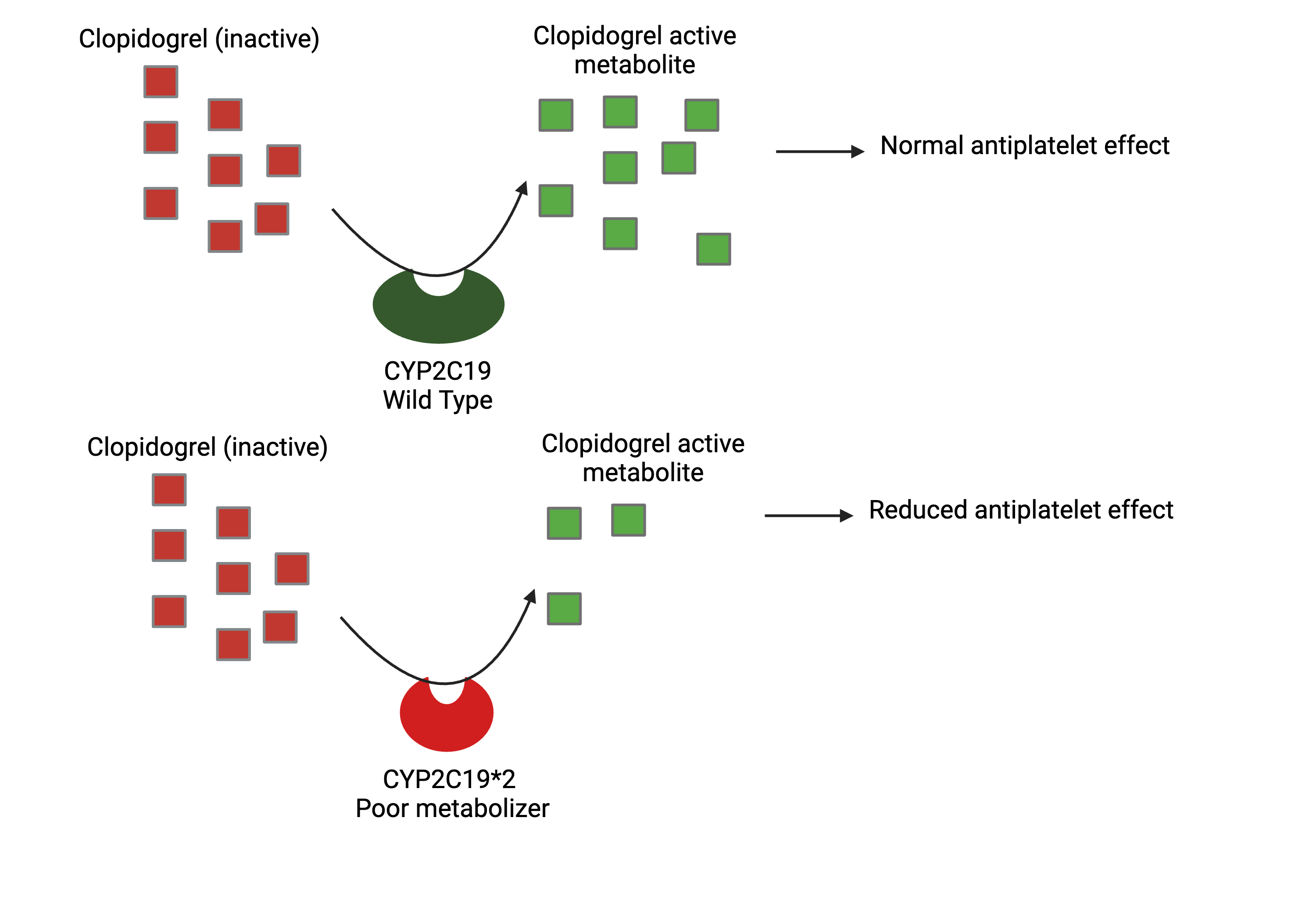 For survivors of a heart attack, it is common to be prescribed clopidogrel, an antiplatelet medication, to prevent further heart attacks. Interestingly, clopidogrel is a prodrug, which means it needs to be metabolized by drug metabolizing enzyme CYP2C19 before it can become effective. A gene coding for CYP2C19 with less activity (aka poor metabolizer) is thus bad news for patients on clopidogrel. This can pose as a problem in Singapore, as 43.8% of our population have decreased CYP2C19 function, while 13.7% have no CYP2C19 function at all (https://rdcu.be/dGZIA). Clopidogrel might thus be not as effective in preventing blood clots as we would like it to be. Per CPIC guidelines, an alternative therapy should be considered instead for people with reduced function CYP2C19 polymorphisms.